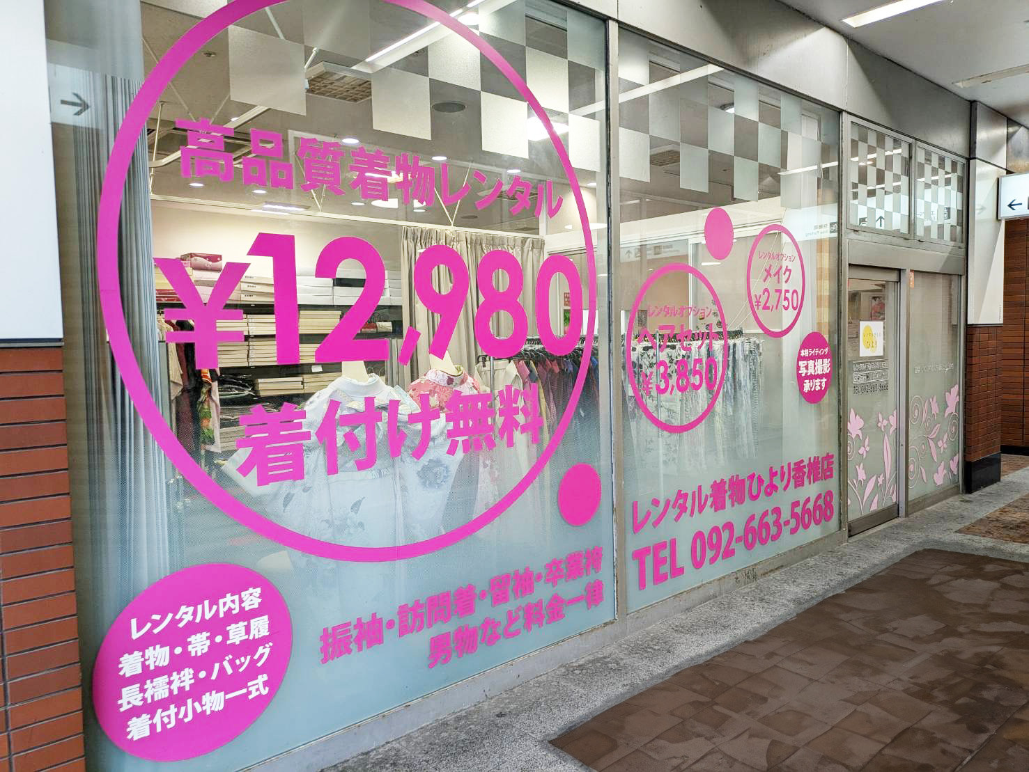 ひより香椎店は、地域に根付いた温かい雰囲気の中で、気軽に着物を楽しめるお店です。